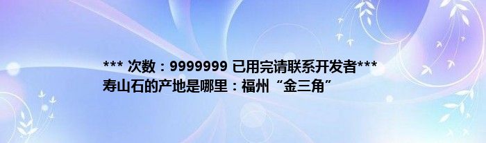 本文*** 次数:9999999 已用完请联系开发者*** 寿山石的产地是哪里:福州“金三角”到此分享完毕,希望对大家有所帮助。
