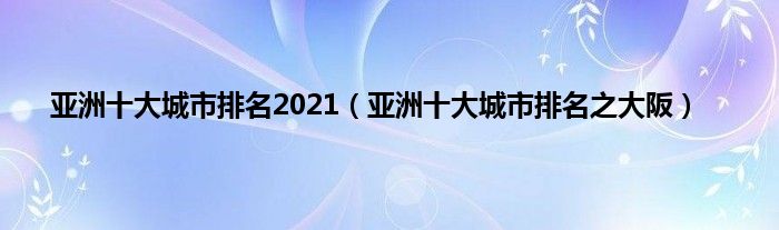 本文亚洲十大城市排名2021,亚洲十大城市排名之大阪到此分享完毕,希望对大家有所帮助。