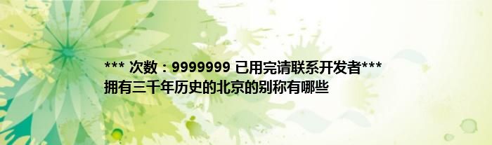 大家好,综合小编来为大家讲解下。*** 次数:9999999 已用完请联系开发者*** 拥有三千年历史的北京的别称有哪些这个很多人还不知道,现在让我们一起来看看吧!