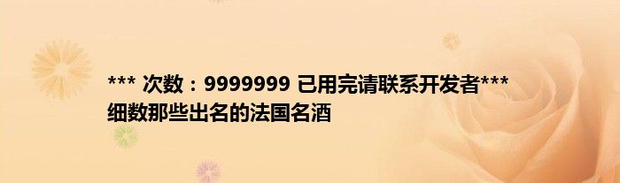 大家好,综合小编来为大家讲解下。*** 次数:9999999 已用完请联系开发者*** 细数那些出名的法国名酒这个很多人还不知道,现在让我们一起来看看吧!