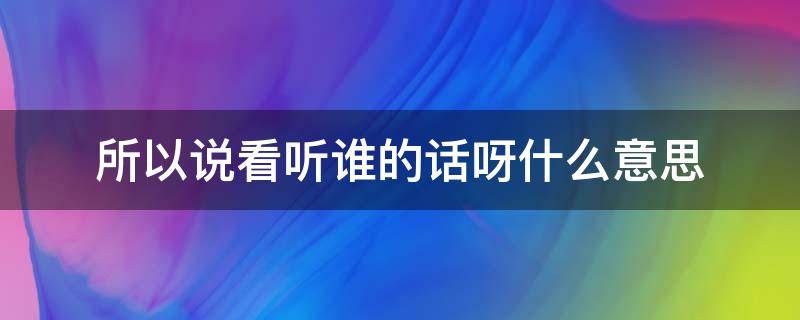 所以说看听谁的话呀的意思是因此要看跟谁的想法走。所以的意思是因此、因而。《文子自然》:天下有始主莫知其理,唯圣人能知所以。《史记卫康叔世家》:必求殷之贤人君子长者,问其所以兴,所以亡,而务爱民。赵树理《三里湾放假》:可是她每天都是第一个先到的,所以对这房子里边的情况很熟悉。《韩非子五蠹》:夫仁义辨智,非所以持国也。听话指的是用耳朵听别人说话以及服从某人的言语,需要养成良好的听别人讲话的态度和习惯。