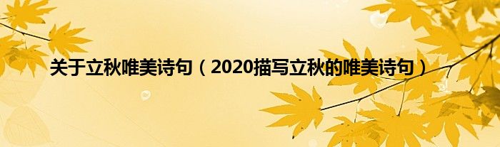 欢迎观看本篇文章,小升来为大家解答以上问题。关于立秋唯美诗句,2020描写立秋的唯美诗句很多人还不知道,现在让我们一起来看看吧!