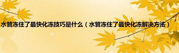 欢迎观看本篇文章,小升来为大家解答以上问题。水管冻住了最快化冻技巧是什么,水管冻住了最快化冻解决方法很多人还不知道,现在让我们一起来看看吧!