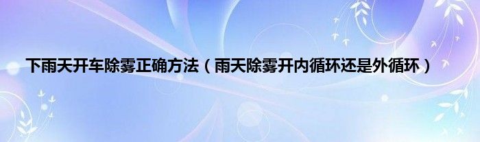大家好,综合小编来为大家讲解下。下雨天开车除雾正确方法,雨天除雾开内循环还是外循环这个很多人还不知道,现在让我们一起来看看吧!