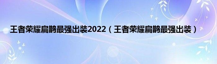 大家好,综合小编来为大家讲解下王者荣耀扁鹊最强出装2022,王者荣耀扁鹊最强出装这个很多人还不知道,现在让我们一起来看看吧!