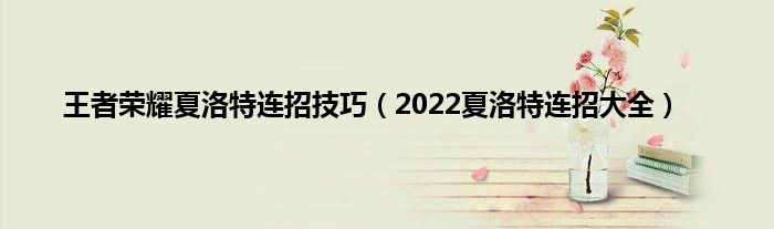 大家好,综合小编来为大家讲解下王者荣耀夏洛特连招技巧,2022夏洛特连招大全这个很多人还不知道,现在让我们一起来看看吧!