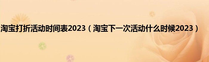 大家好,综合小编来为大家讲解下淘宝打折活动时间表2023,淘宝下一次活动什么时候2023这个很多人还不知道,现在让我们一起来看看吧!