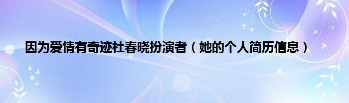 欢迎观看本篇文章,小升来为大家解答以上问题。因为爱情有奇迹杜春晓扮演者,她的个人简历信息很多人还不知道,现在让我们一起来看看吧!