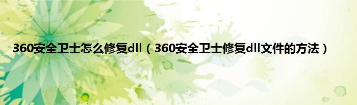 大家好,综合小编来为大家讲解下360安全卫士怎么修复dll,360安全卫士修复dll文件的方法这个很多人还不知道,现在让我们一起来看看吧!