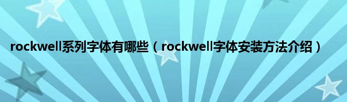 大家好,综合小编来为大家讲解下rockwell系列字体有哪些,rockwell字体安装方法介绍这个很多人还不知道,现在让我们一起来看看吧!