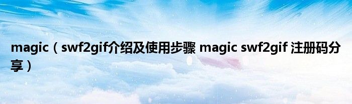 大家好,综合小编来为大家讲解下magic,swf2gif介绍及使用步骤 magic swf2gif 注册码分享这个很多人还不知道,现在让我们一起来看看吧!