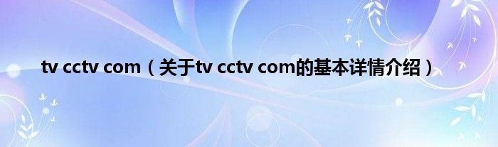 本文关于tv cctv com的基本详情介绍就讲解完毕,希望对大家有所帮助。