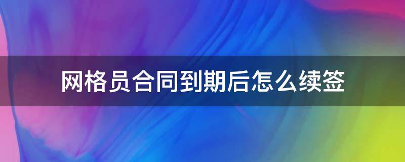 网格员合同到期后依照签订的合同处理或者续签。网格员一般指城市管理网格员。2020年7月6日,人力资源社会保障部、市场监管总局、国家统计局联合发布了城市管理网格员在内的9个新职业。网格员是指运用现代城市网络化管理技术,巡查、核实、上报、处置市政工程(公用)设施、市容环境、社会管理事务等方面的问题,并对相关信息进行采集、分析、处置的人员。工作内容包括研究网格内市政工程(公用)设施、市容环境、社会管理事务等方面问题的立案事宜。