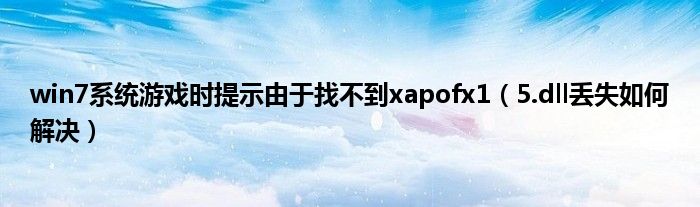 大家好,综合小编来为大家讲解下win7系统游戏时提示由于找不到xapofx1,5.dll丢失如何解决这个很多人还不知道,现在让我们一起来看看吧!