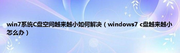 大家好,综合小编来为大家讲解下win7系统C盘空间越来越小如何解决,windows7 c盘越来越小怎么办这个很多人还不知道,现在让我们一起来看看吧!