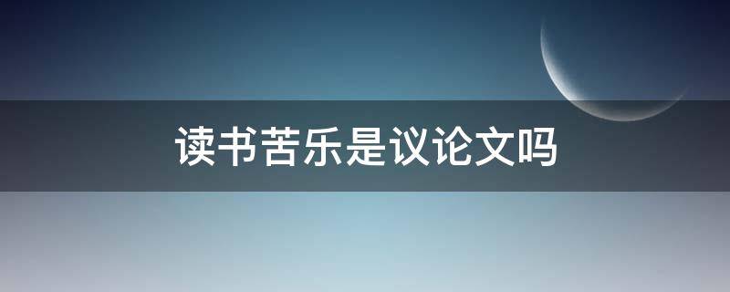读书苦乐是议论文。书是人类进步的阶梯,是一把打开知识宝库的金钥匙,是人类的良师益友。读一本好书会使你终生受益,使你懂得更多的道理,但读书却是一件既艰苦又快乐的事情。议论文,又叫说理文,是一种剖析事理,论述事理,发表意见,提出主张的文体。作者通过摆事实、讲道理、辨是非、举例子等方法,来确定某观点正确或错误,树立或否定某种主张。议论文具有观点明确、论据充分、语言精炼、论证合理、有严密的逻辑性的特点。