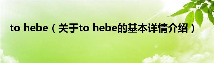 本文关于to hebe的基本详情介绍就讲解完毕,希望对大家有所帮助。