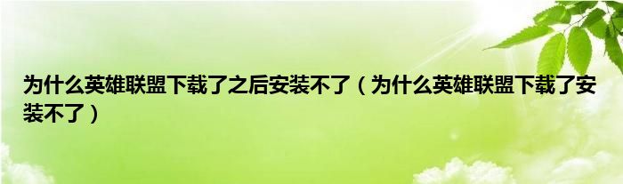 以上就是【为什么英雄联盟下载了之后安装不了,为什么英雄联盟下载了安装不了】相关内容。