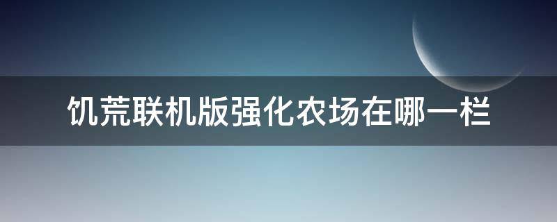 饥荒联机版强化农场在制作栏。找到一片空地,将农场建设在空地上即可。《饥荒》是由Klei Entertainment开发的一款动作冒险类求生游戏,于2013年4月23日在PC上发行,2015年7月9日在iOS发布口袋版。游戏讲述的是关于一名科学家被恶魔传送到了一个神秘的世界,玩家将在这个异世界生存并逃出这个异世界的故事。2022年2月,Klei宣布旗下《饥荒》游戏通过Steam Deck验证。