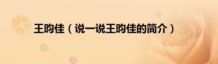 王昀佳(说一说王昀佳的简介)