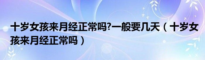 大家好,乐天来为大家解答以下的问题,十岁女孩来月经正常吗?一般要几天,十岁女孩来月经正常吗很多人还不知道,现在让我们一起来看看吧!