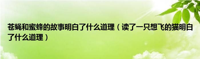 大家好,乐儿来为大家解答以下问题,苍蝇和蜜蜂的故事明白了什么道理,读了一只想飞的猫明白了什么道理很多人还不知道,现在让我们一起来看看吧!