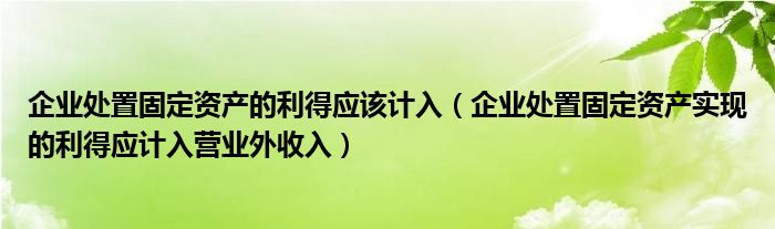 关于企业处置固定资产的利得应该计入,企业处置固定资产实现的利得应计入营业外收入这个很多人还不知道,今天菲菲来为大家解答以上的问题,现在让我们一起来看看吧!