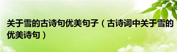 关于雪的古诗句优美句子(古诗词中关于雪的优美诗句)