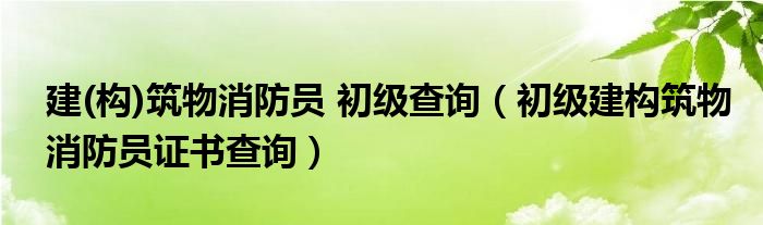 关于建(构)筑物消防员 初级查询,初级建构筑物消防员证书查询这个很多人还不知道,今天菲菲来为大家解答以上的问题,现在让我们一起来看看吧!