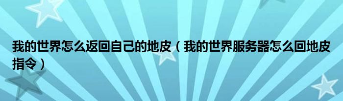 关于我的世界怎么返回自己的地皮,我的世界服务器怎么回地皮指令这个很多人还不知道,今天菲菲来为大家解答以上的问题,现在让我们一起来看看吧!