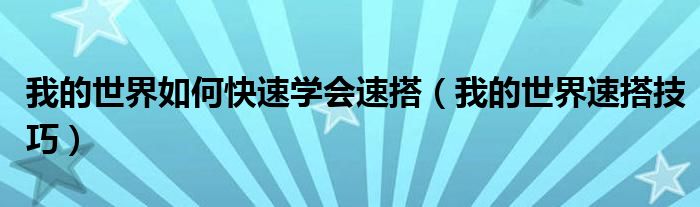 关于我的世界如何快速学会速搭,我的世界速搭技巧这个很多人还不知道,今天菲菲来为大家解答以上的问题,现在让我们一起来看看吧!