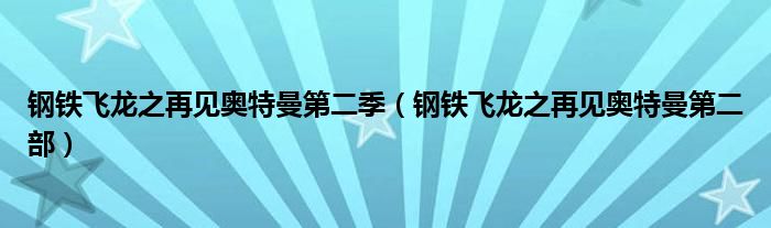 关于钢铁飞龙之再见奥特曼第二季,钢铁飞龙之再见奥特曼第二部这个很多人还不知道,今天菲菲来为大家解答以上的问题,现在让我们一起来看看吧!