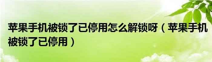 关于苹果手机被锁了已停用怎么解锁呀,苹果手机被锁了已停用这个很多人还不知道,今天菲菲来为大家解答以上的问题,现在让我们一起来看看吧!