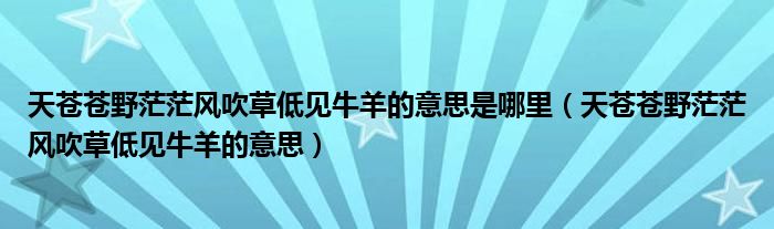 大家好,乐儿来为大家解答以下问题,天苍苍野茫茫风吹草低见牛羊的意思是哪里,天苍苍野茫茫风吹草低见牛羊的意思很多人还不知道,现在让我们一起来看看吧!