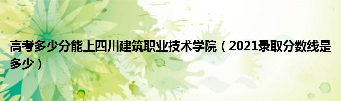 大家好,乐儿来为大家解答以下问题,高考多少分能上四川建筑职业技术学院,2021录取分数线是多少很多人还不知道,现在让我们一起来看看吧!