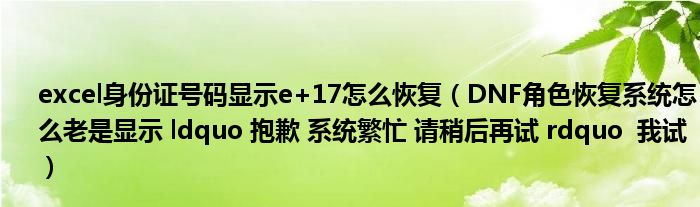 excel身份证号码显示e+17怎么恢复(DNF角色恢复系统怎么老是显示 ldquo 抱歉 系统繁忙 请稍后再试 rdquo 我试)