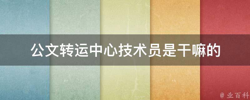 4、技术支持和培训:技术员会为其他员工提供关于公文转运系统的技术支持和培训,帮助他们熟悉和正确使用系统。