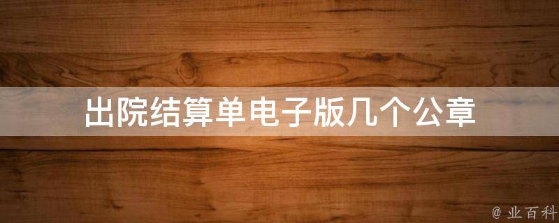 视情况而定。具体的出院结算单电子版所需的公章数量可能因地区、医院、相关法规的不同而有所差异,数量并不统一。可能有:医院或医疗机构公章、医生签名章、财务章或会计章、监管部门章或相关部门的公章等。出院结算单是由医院或医疗机构提供的,因此通常需要医院的公章确认结算单的真实性和有效性。