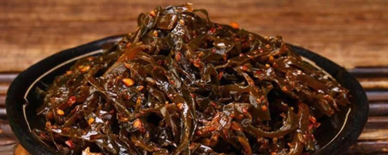 8、快速翻炒,让海带丝均匀地粘上佐料。