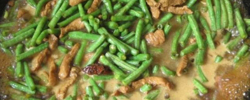 锅中放适量油,油热后,放入花椒八角炒出香味,放入葱姜蒜爆出香味,再放入肉片,炒至肉片泛白,放入豆角继续翻炒。