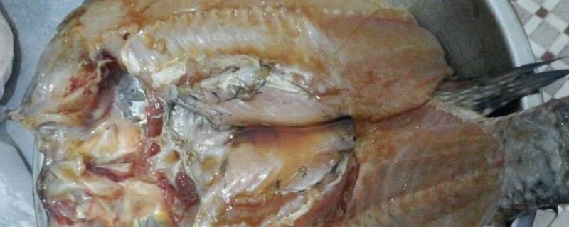 1小时左右。为了使鱼充分入味,要把鱼剖成两半,从背入刀连头分为两半,肚皮连着不要分开,注意不可洗鱼,会在腌制过程中变味。只能用干净的布擦一下,再放入葱头、姜片、花雕、胡椒粉、辣鲜露、味精、鸡粉、盐、生抽、十三香、树椒段腌制1小时左右即可。