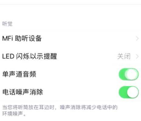 3、向下滑找到“单声道音频”,“电话噪声消除”,将这两个选项打开。