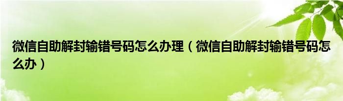 关于微信自助解封输错号码怎么办理,微信自助解封输错号码怎么办这个很多人还不知道,今天菲菲来为大家解答以上的问题,现在让我们一起来看看吧!