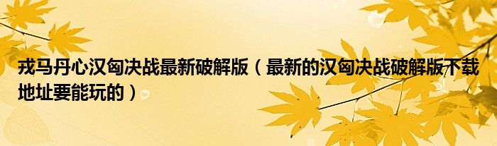 戎马丹心汉匈决战最新破解版(最新的汉匈决战破解版下载地址要能玩的)