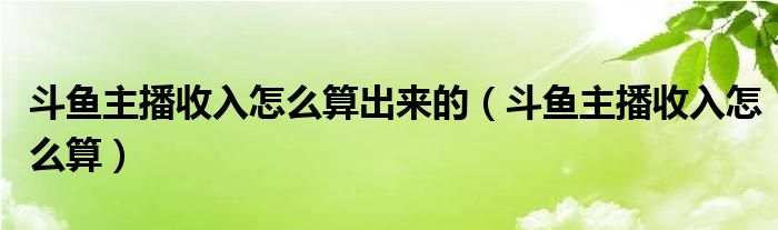 关于斗鱼主播收入怎么算出来的,斗鱼主播收入怎么算这个很多人还不知道,今天菲菲来为大家解答以上的问题,现在让我们一起来看看吧!