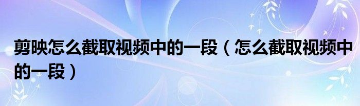 关于剪映怎么截取视频中的一段,怎么截取视频中的一段这个很多人还不知道,今天菲菲来为大家解答以上的问题,现在让我们一起来看看吧!