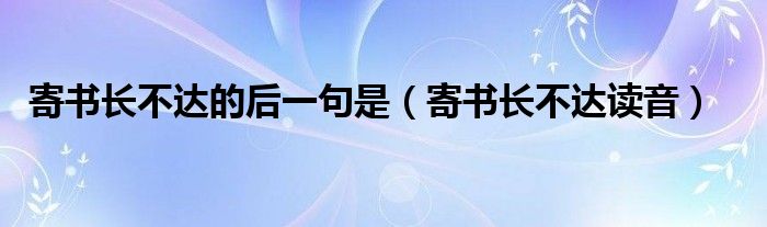 关于寄书长不达的后一句是,寄书长不达读音这个很多人还不知道,今天菲菲来为大家解答以上的问题,现在让我们一起来看看吧!