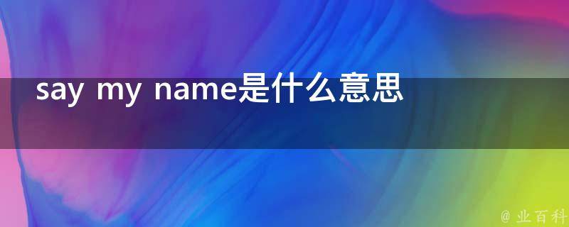 say my name的意思是说出我的名字。这是一种表达自己身份或要求他人叫自己名字的方式。例句:I wanna hear you say my name。