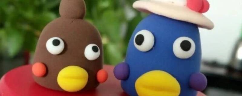 5、用棕色彩泥搓出两个一大一小的圆,小的圆压扁用剪刀剪出两个脚,大的圆当作头,用粉色彩泥搓出小花粘在头上作为发饰。
