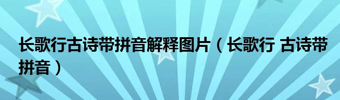 关于长歌行古诗带拼音解释图片,长歌行 古诗带拼音这个很多人还不知道,今天菲菲来为大家解答以上的问题,现在让我们一起来看看吧!